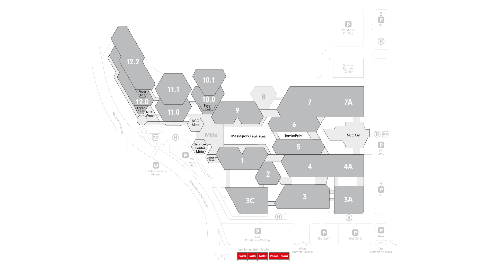 The billboards at the access road to Süd Parking are optimally positioned to target drivers on their way to the exhibition grounds. With five available advertising spaces, they offer maximum visibility for brand messages even before visitors arrive at the venue.